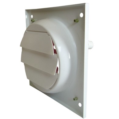 За вентилятором вытяжки обычно ставится обратный клапан. Это простая механическая штука, которая пропускает воздух в одну сторону (в шахту) и не пропускает в другую (в дом). Выглядит примерно так: