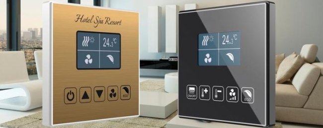 Есть много моделей с экраном и без, с разным количеством клавиш. Все клавиши сенсорные, внешний вид панели и пиктограммы на клавишах полностью изменяемые.
