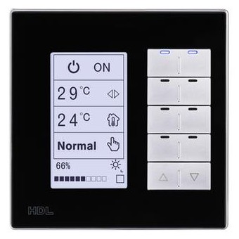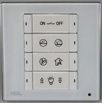 Это специализированные выключатели, с которых можно управлять разными функциями системы. Удобны, когда в комнате много управляемых приборов. Обычно такие панели работают по шине HDL или KNX. Вот настенная панель HDL: