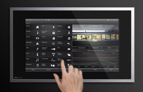 Это уже полноценные панели управления всеми системами дома, включая просмотр видеокамер, звук, некоторые настройки. Они могут быть специализированными, обычно это протокол KNX, либо всё чаще ставят планшеты в настенной рамке.