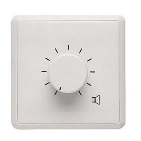 Если в квартире два санузла, а отдельный звук в каждом из них нам не нужен, то можно поставить один усилитель на оба, играть и там и там будет одно и то же. Можно добавить на стене регуляторы громкости типа такого: