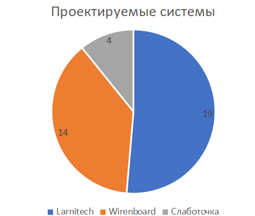В 2020 году я выполнил 23 проекта. Распределение по типам проектируемых систем было такое: