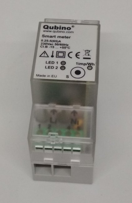 Столкнулся с задачей измерения потребляемой мощности большого количества веток электроснабжения на оборудовании Z-Wave. Речь идёт о 10-12 линиях питания. Если бы мы могли поставить проводную систему, то я бы, наверное, выбрал контроллер ОВЕН ПЛК и модуль ввода параметров электрической сети МЭ110-220.3М Но этот модуль занимает достаточно много места в щите. Есть модуль измерения потребляемой мощности Beckhoff KL3403, он измеряет мощность от трёх токоизмерительных трансформаторов, которые также занимают достаточно много места. В случае с Z-Wave у нас есть отличное решение — Qubino Smart Meter. Выглядит он так: Вид сверху и снизу: Внизу на модуле 5 клемм. Первая и вторая — фаза и ноль питания модуля, 220 вольт переменного тока. Четвёртая клемма — питание управляющего выхода, пятая — управляющий выход на реле. Измеряемые кабели проходят через модуль, клеммы для них очень толстые. Вид сбоку: В корпусе сделано окно для доступа к кнопке программирования модуля на контроллер. То есть, всего в двух DIN местах мы получаем и модуль измерения, и трансформатор. Модуль беспроводной, работает с контроллером Z-Wave. Спереди два светодиода. Первый — наличие питания модуля. Второй — работа управляющего выхода. Доступны для заказа модули с разной частотой работы: Модуль измеряет следующие параметры сети: Напряжение Ток Активная мощность Реактивная мощность Power Factor Выход модуля №5 позволяет управлять контактором. В частности, Qubino предлагает использовать бистабильное реле IKA232-20 с двумя группами контактов и мощностью коммутации до 32А. А измеряемая модулем мощность — до 65 ампер. Вот схема подключения реле: Qubino Smart Meter на данный момент совместим с Home Center 2 с прошивкой 4.08 и новее, в том числе управление реле. Мощность на выходе для подключения катушки реле 3 Вт.