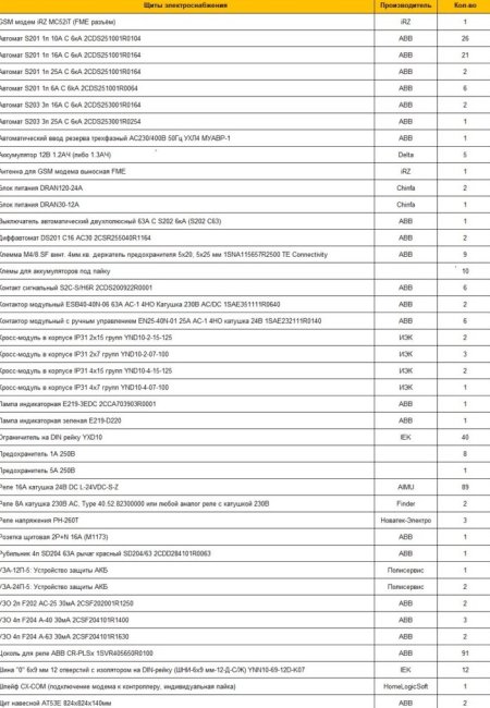 Последний этап проектирования — спецификация оборудования. То есть, полный перечень всего оборудования, которое используется в проекте.
