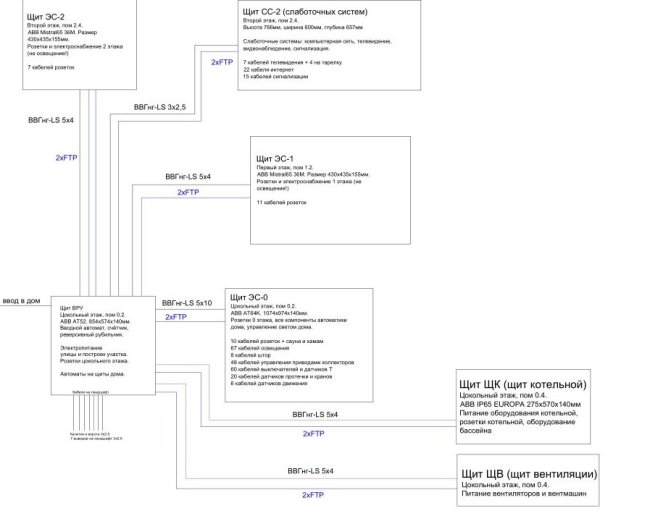Я считаю, что проекты электрики, автоматики Умный Дом и слаботочных систем неразрывны, в идеальном варианте они должны выполняться одним проектировщиком, тогда строителям будет удобно по ним работать. За исключением каких-то специализированных систем вроде молниезащиты. Поэтому в проектах я, как правило, выполняю схемы вообще всех кабелей.