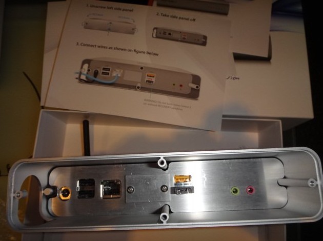 Выглядит довольно неплохо. У него, в отличие от пластикового Home Center Lite, алюминиевый корпус, и он сам более крупный. Сначала я даже не понял, где у него все подключения, прошлось открыть инструкцию (одна страница А4) и понять, что нужно отвинтить левую стенку.