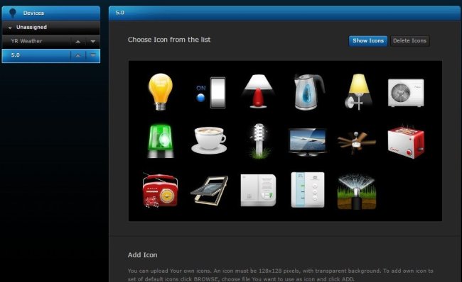 Я не нашёл обогреватель и выбрал Other Device. Для устройства Home Center 2 предлагает задать иконку. К сожалению, иконок на выбор очень мало. Но можно добавить свою, с прозрачным фоном размером 128*128.
