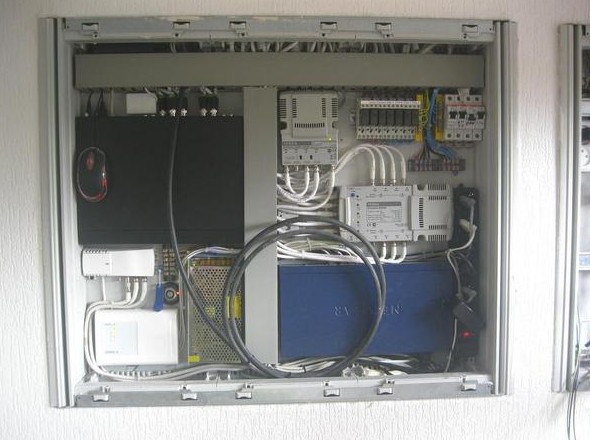Часто у заказчиков и дизайнеров возникает желание уменьшить объём, занимаемый различной техникой в квартире, в идеале уместить его в какой-нибудь самый малозаметный щиток (вроде того, который был в квартире при её получении). Желание, в общем, достаточно понятное, так как аппаратура, как правило, помещение не украшает, для её скрытого размещения надо придумывать шкафы и выделять драгоценную площадь.