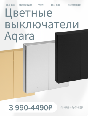 В период с 10 до 26-го ноября 2023 года скидки до 25% на весь ассортимент Aqara.