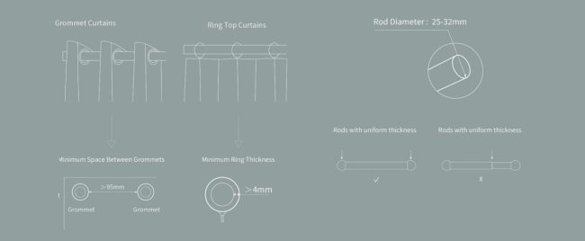 У штор с кольцами толщина колец должна быть более 4 мм.