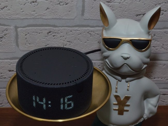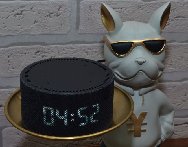 Также с лицевой стороны колонки, чуть левее «язычка» с буквой Я, находится дисплей, который способен отображать различную информацию и эмоции. Основным преимуществом наличия дисплея является отображение на нём часов. В зависимости от желания, можно попросить Алису показывать время постоянно или только по запросу. Ещё из полезного он может показывать погоду за окном и таймер. Причём если попросить Алису показать эту информацию именно на дисплее, то она не будет дублировать её голосом, что хорошо для позднего времени. Когда микрофон активен, на дисплее мигают полоски. Также на дисплее может отображаться символ паузы или имитация эквалайзера. А ещё колонка может строить «глазки» во время общения с голосовым помощником. Яркость дисплея можно регулировать через приложение Умный Дом. Её можно выставлять вручную или предоставить это делать ИИ. Дисплей яркий и на нём отчётливо видны цифры и символы даже издалека.