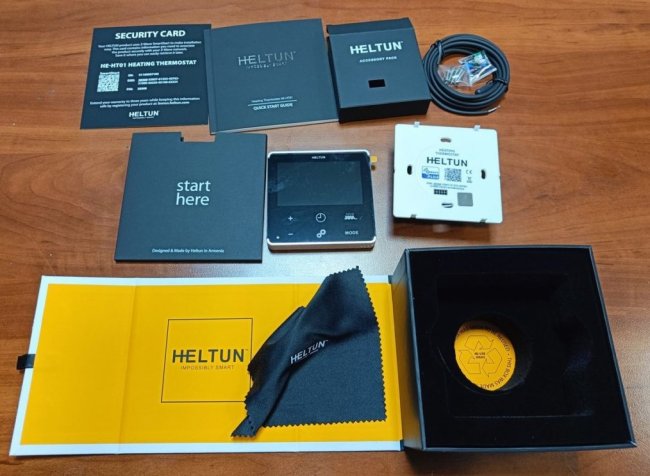 Упаковка у термостата, как и у всего оборудования Heltun, королевская: магнитная крышка коробки, мягкий паралон, фирменная тряпочка для протирки, оконечники для кабелей, серебряное тиснение на инструкции. На коробке указано, что она может быть переработана.