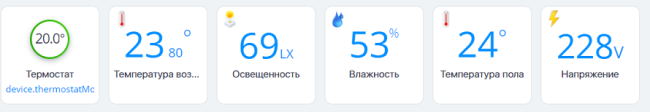 В интерфейсе контроллера при добавлении термостата появляются следующие устройства: