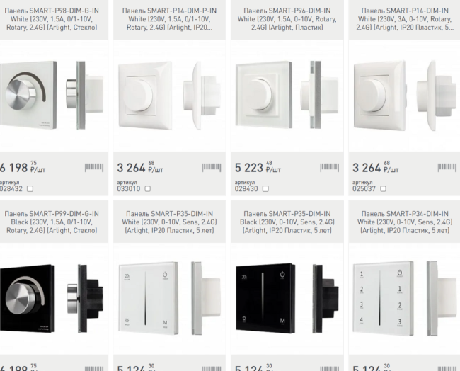 Вот пример ассортимента активных панелей Arlight с питанием 230 вольт: