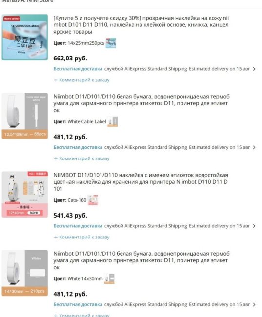 Почитал описание и понял, что это не просто наклейки, на которых можно маркером писать (хотя, можно, конечно), а бирки для термопечати на специальном портативном принтере. Я подумал, что это достаточно полезная штука, и заказал принтер Niimbot D110 на Aliexpress.
