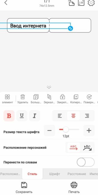 В шаблоне пишем текст на наклейке. Опций редактирования текста очень много. Разумеется, никакие цвета текста, кроме чёрного, не доступны.