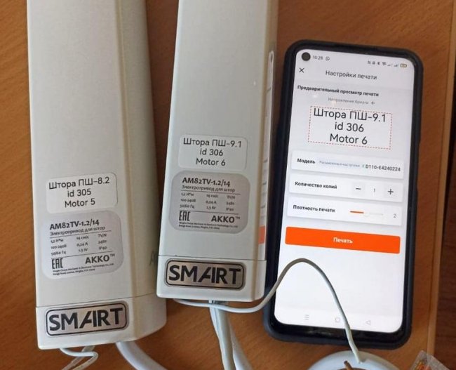 Теперь у меня будут красивые наклейки на модули! Вот так выглядит печать наклеек для приводов электроштор. Я их настроил для работы по RS485.