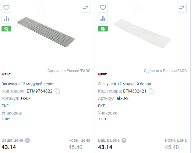 Вот для сравнения заглушки IEK на те же 12 модулей, белого и серого цвета.