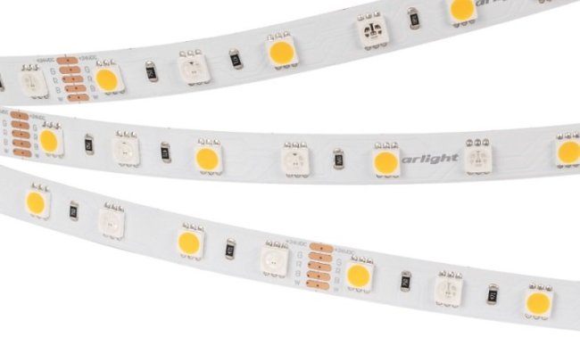 RGBW лента имеет отдельные белые диоды, чтобы можно было включать её в режим белого цвета. Вот они, видны на картинке.