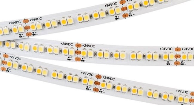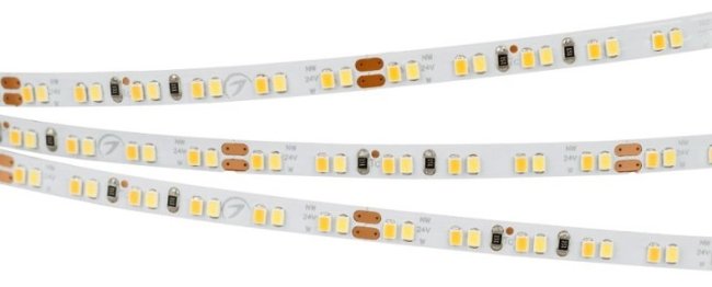 Мощность лент такого типа в ассортименте Arlight 11.5 ватт на метр, напряжение 24 вольта, есть разные цвета и световая температура. Открытые ленты стоит порядка 1000 рублей за метр, влагозащищённые от 1500 рублей за метр.