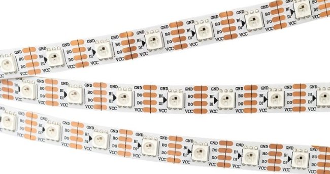 Классическая лента с тремя цветами. В каждом диоде три цвета: красный, зелёный и синий.