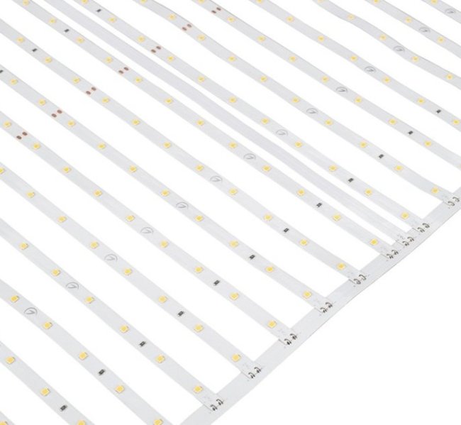 В такой ленте ней используются не светодиоды, а кристаллы, за счёт чего свечение ленты полностью равномерное, без отдельных точек.
