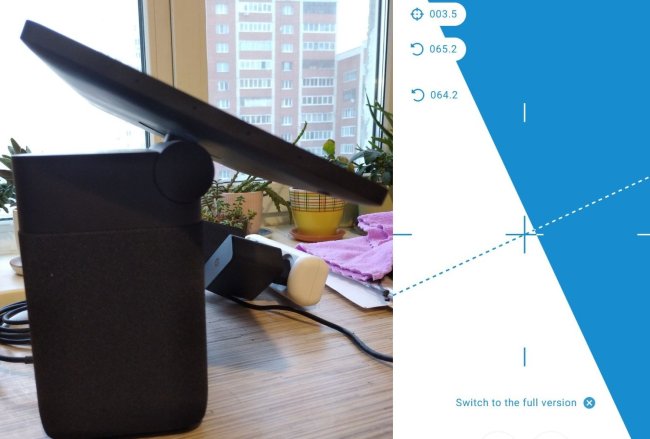 Согласно измерениям с помощью гироскопа смартфона, угол наклона экрана «Станции Дуо Макс» варьируется от 15° до 65° вертикальной оси.