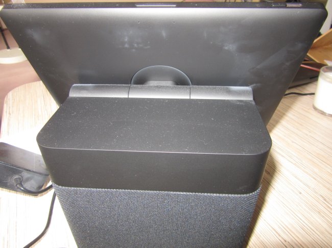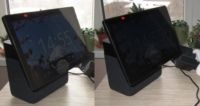 Можно попробовать немного наклонить станцию вперёд , чтобы экран смотрел прямо на пользователя, сидящего за столом перед гаджетом, но это не безопасно для устройства, которое может перевернуться или завалиться на экран.