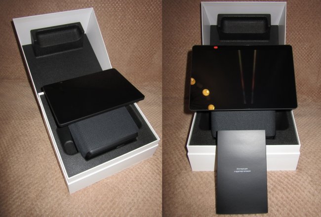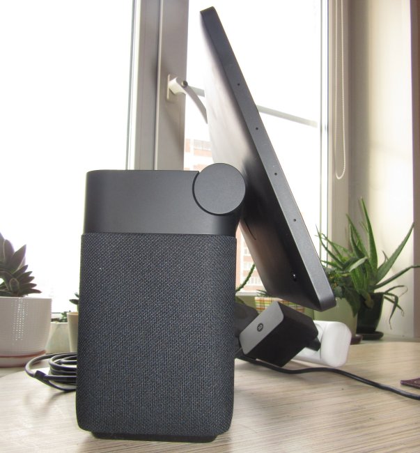 «Станция Дуо Макс» представляет собой колонку среднего размера (мощностью 60 Вт) с голосовым ассистентом «Алисой», а также имеет установленный сверху на шарнире большой поворотный Full HD touch-экран (диагональ 10,5", разрешение 1920х1200) со встроенной камерой (13 Мп) с широким углом обзора 120°.