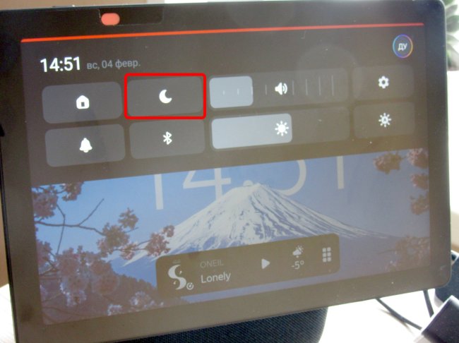 Оказалось, что у экрана «Станция Дуо Макс» есть ещё одна интересная особенность. Его нельзя выключить. Ночью он всё равно включён. Единственная возможность отключить экран — отсоединить питание от колонки. У экрана есть опция «Спящий режим», когда его яркость снижается до минимума.