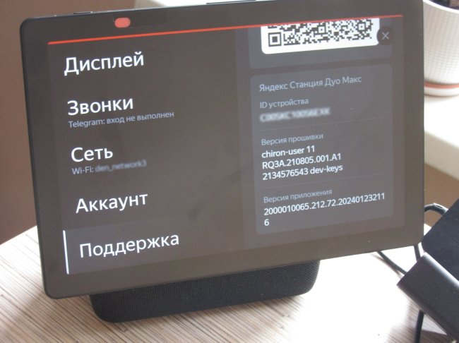 А вот в меню с настройками доступны всего пять пунктов, включая обращение в техподдержку по QR-коду при необходимости.