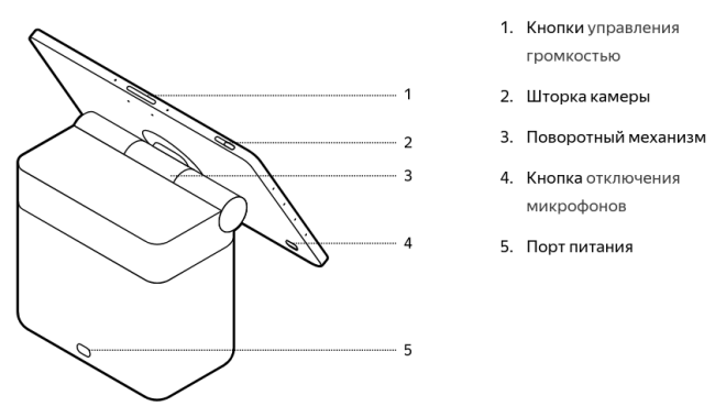 Специально разработанный специалистами «Яндекса» поворотный и крепёжный механизм для вращения экрана в двух плоскостях не позволяет выставить угол наклона этого элемента станции в широком диапазоне до 80°-90°, но даёт возможность регулировки только в 50°.