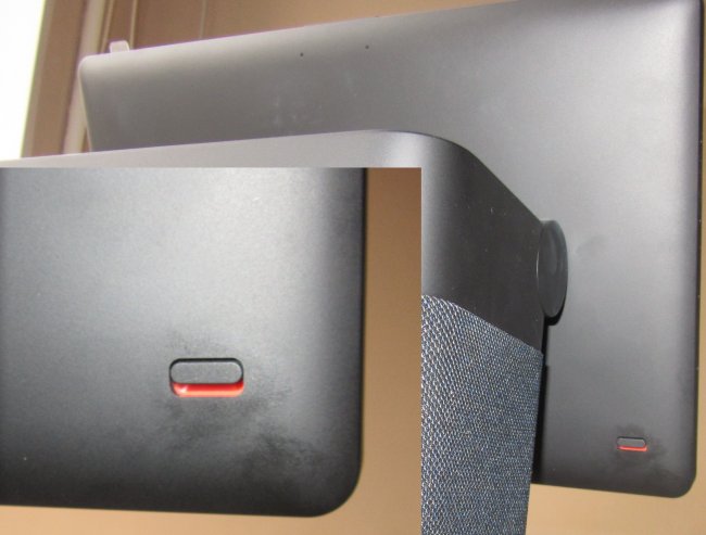 Также у «Станции Дуо Макс» есть физический переключатель для включения или отключения питания всех восьми микрофонов (сам переключатель на корпусе никак не обозначен дополнительными текстовыми пояснениями). Причём при активации этого переключателя в верхней части экрана колонки появляется тонкая красная полоска, которую убрать нельзя. Она особо не мешает, так как видна только в основном меню и в режиме скринсейвера.