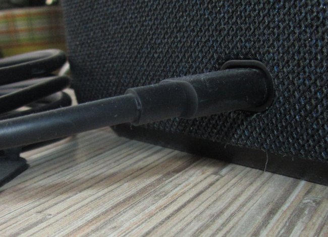 Блок питания станции имеет разъём USB-C. В штатном комплекте питания используется сборка с неотключаемым со стороны блока питания кабелем. Со стороны станции место крепления кабеля питания никак не фиксируется, кроме защёлки в разъёме, так что при небольшом движении кабель можно легко вытащить из разъёма и обесточить колонку.
