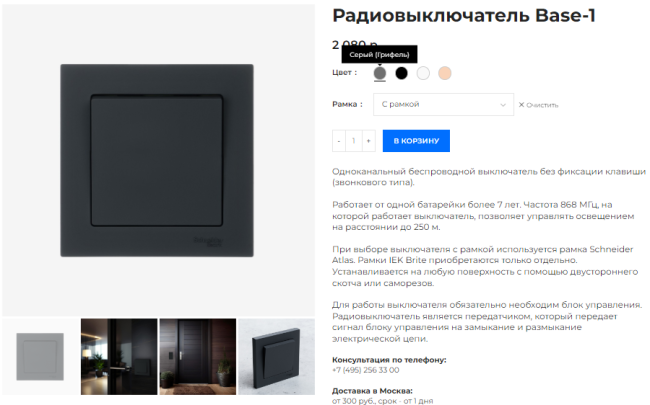 А вот у радиовыключателей HiTE PRO вариантов цвета всего 4: Белый, Бежевый, Чёрный и Серый.