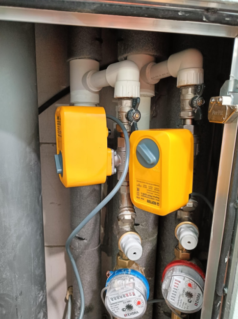 В квартире устанавливаются датчики протечки: под мойкой кухни, за стиральной машиной, под ванной, под узлом ввода воды.