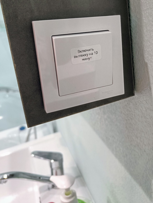 Управление вытяжкой ванной сделано с выключателя и автоматически по датчику влажности.