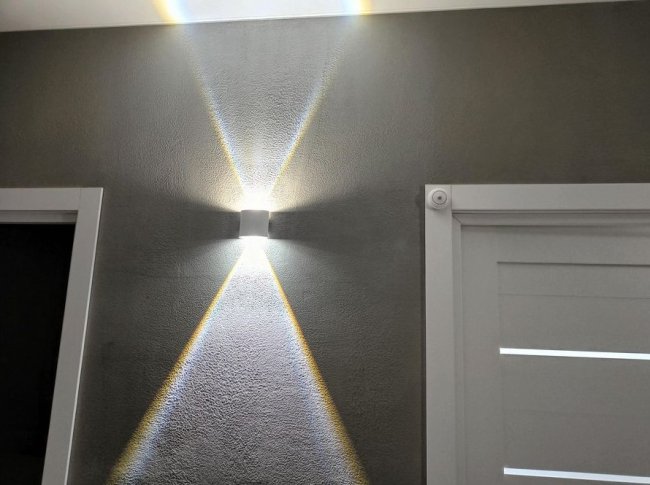 В коридоре предусмотрены настенные светильники «вверх-вниз» в качестве дежурной подсветки. Кабель от них заводится на реле HiTE PRO на DIN рейке в щите, выключателя не предусмотрено.