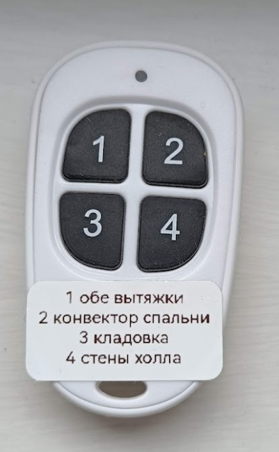 Для того, чтобы можно было во время ремонта включать приборы, управляемые с модулей HiTE PRO на DIN рейку, был куплен 4-кнопочный пульт.