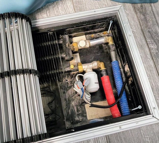 Во внутрипольном конвекторе установлен привод Valtec, от него идёт кабель в щит на реле HiTE PRO.