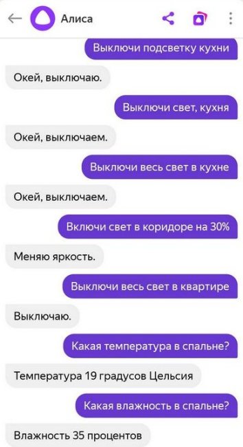 Сразу начинает работать голосовое управление через Алису. Можно говорить в Яндекс Станцию или в смартфон с приложением.