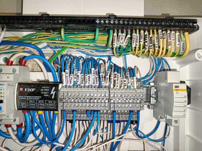 Кабели заводятся в щит через 2-уровневые клемники ABB (кроме того, что заводится сразу на дифавтоматы).