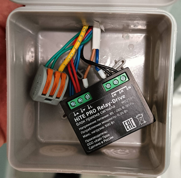 Модуль HiTE PRO Drive в монтажной коробке рядом с кранами: