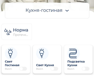 В квартире, про которую мы говорим, под всеми выключателями света установлены диммеры, кроме подсветки кухни — там стоит реле. Реле HiTE PRO для подсветки кухни изначально не планировалось ставить, но, во первых, с реле эта подсветка будет отключаться по сценариям, во-вторых, можно сказать «Алиса, включи подсветку кухни» и получить неяркий свет в кухне-гостиной.