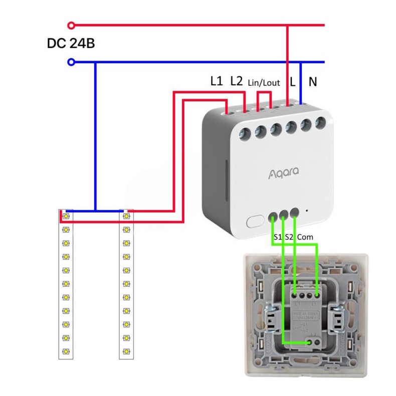 Aqara Dual Relay Module T2 — это компактное двухканальное реле, предназначенное для удаленного управления различными устройствами, такими как освещение, вентиляторы, гаражные ворота, моторы, выключатели, розетки и другие. Устройство поддерживает протокол Zigbee 3.0 и требует подключения к Центру умного дома (хабу) для полноценной работы в экосистеме Aqara. Реле работает в двух режимах: с сухим контактом и с мокрым контактом. Сухой контакт — это изолированный от всех электрических цепей электромеханический контакт. Он замыкает или размыкает электрическую цепь без прямого подключения к источнику питания. Мокрый контакт — это контакт, который уже подключен к источнику питания. Это упрощает подключение, но ограничивает возможности применения, так как требует наличия источника питания для работы. Сухой контакт обладает большей универсальностью, чем мокрый контакт.