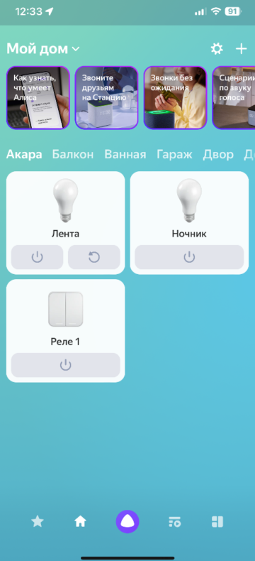 Новое устройство готово к использованию, осталось переименовать аксессуары и при необходимости изменить их тип. В умном доме Яндекс есть возможность распределить реле по разным комнатам.