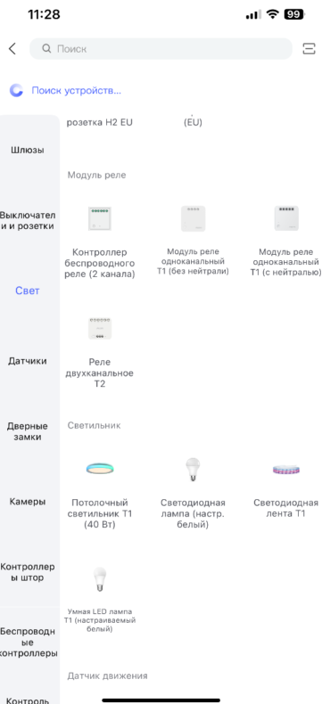 Шаг 3: в списке добавляемых устройств выберите «Реле двухканальное T2».
