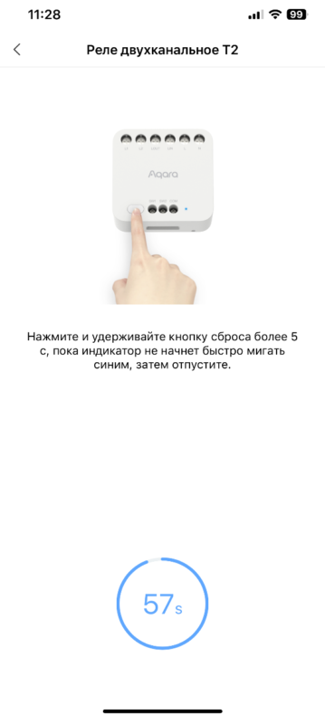 При первом включении в сеть, реле автоматически перейдет в режим сопряжения с хабом, этому свидетельствует мигающий синим цветом светодиод на корпусе реле.