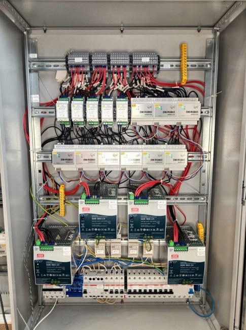 Также в щите будет датчик температуры, подключенный к Larnitech, для отслеживания перегрева. При перегреве можно отключать светодиодные ленты либо полностью питание блоков.