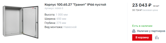 На 6 тысяч рублей дешевле стоит аналогичный щит со степенью защиты IP31, но в нём нет креплений для шасси с рейками, а я предпочитаю, когда всё устанавливается стандартным образом.